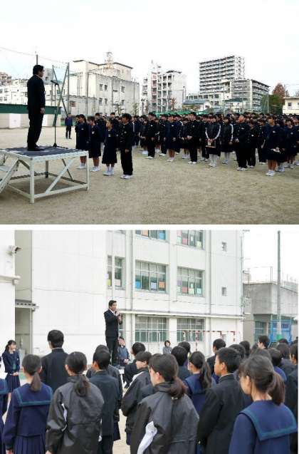 今日の全校集会は運動場で行いました。体育館が工事のため使用できません。久しぶりに運動場での全校集会です。校長先生からは、多様な見方をしようとお話しました。