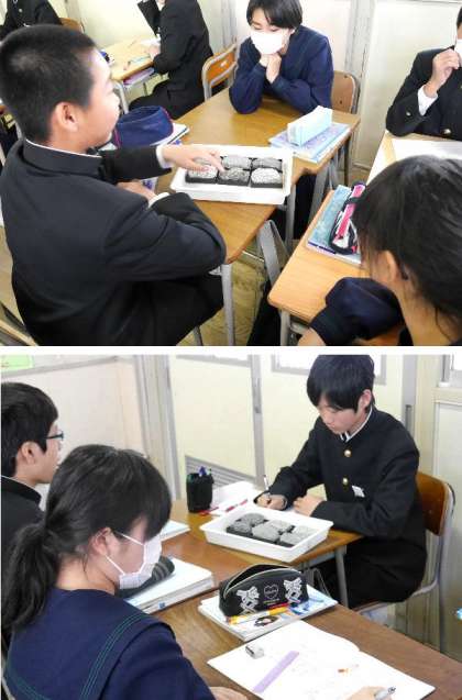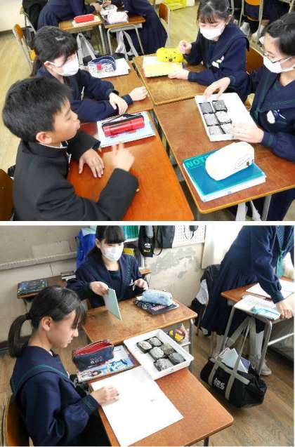 1年生の理科の授業です。鉱物について学習しています。鉱物を見分けられるように