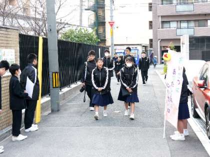 先週、2年生でかぜ症状の生徒がふえ、早退等が増えたので、始業時間を遅らせたりしました。今日は全校集会ですが、かぜ感染を考慮して全校首魁は中止としました。マスクをして登校する生徒もふえてきましたね。手洗いとうがいをしっかりして、十分な睡眠をしっかりととりましょう。