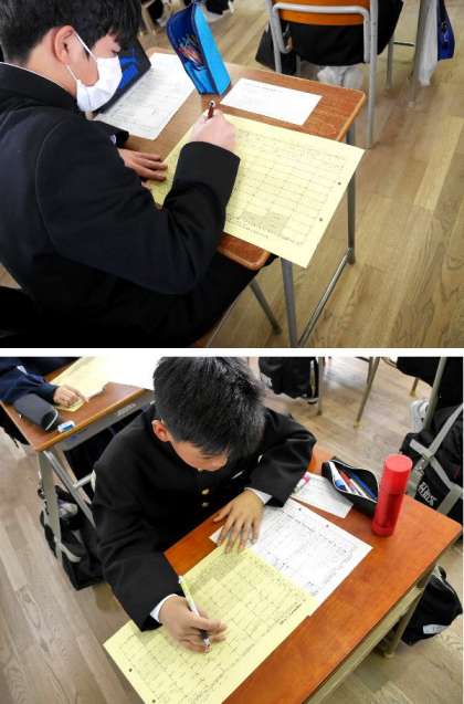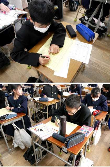 今月の2月26日〜28日には、1・2年生の学年末テストがあります。そのテスト勉強のための学習計画をたてていました。テスト範囲のプリントが配られました。計画的に学習に取り組みましょう。