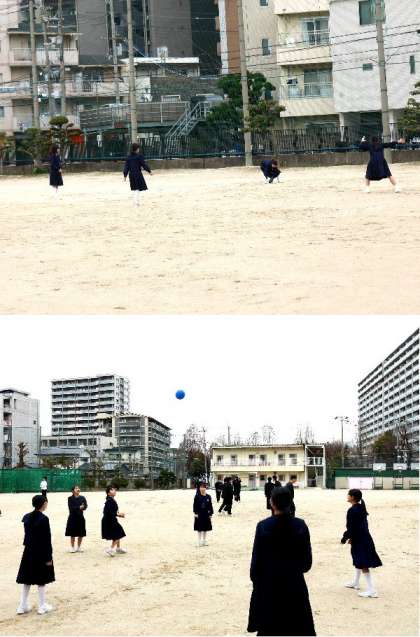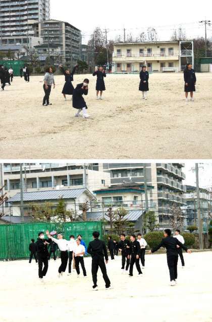 1・2年生は学年末テストで午前で帰宅しました。3年生は給食を食べ、最後の昼休みを運動場で過ごすなどしていました。