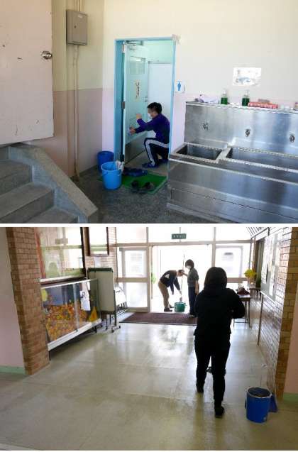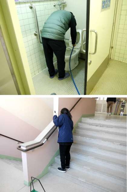 明日の卒業式のため、前日の清掃を教職員で行いました。