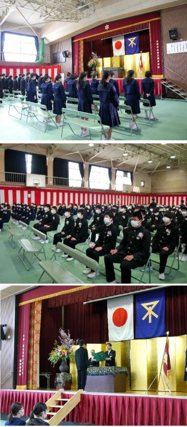 本日、3月13日(金)、午前9時30分に、第57期卒業生が式場に入場し、卒業証書授与式が始まりました。卒業式の練習がほとんどできないなか、卒業生たちが堂々とし態度で証書を授与しました。一人ひとりに思いを込めて手渡すことができてよかったです。