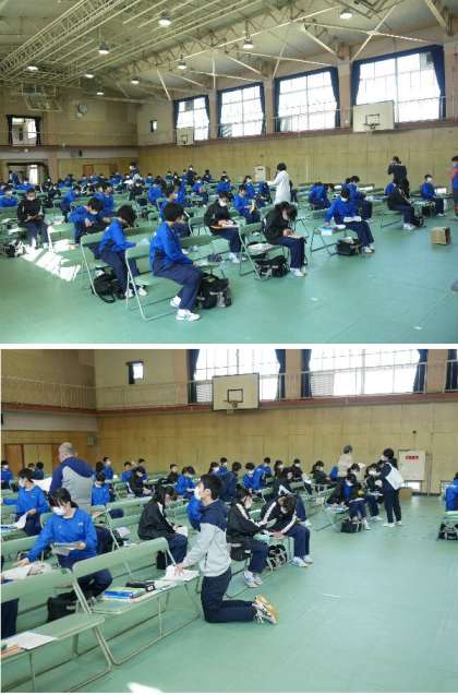 今日は、午前9時に1年生が登校しました。来週からのこと春休みのことを説明しました。健康観察、課題確認をして、教室にあった絵具などの道具を持ち帰りました。自由参加で運動場で軽い運動をしました。図書館で本を借りている生徒もいました。