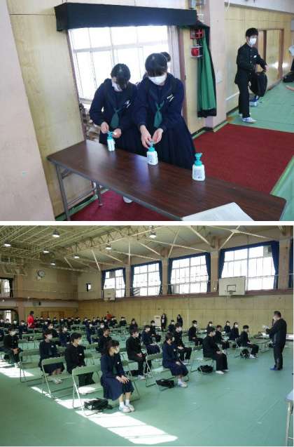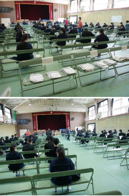 2年生は午後1時30分から登校をして、教室においてある荷物を持ち帰ったり、健康観察や各学級の学活などをおこないました。来週の登校日と春休みについて説明を行いました。