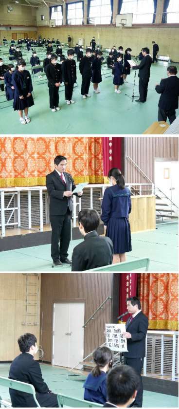 2年生の修了証を校長先生から代表生徒にお渡ししました。校長先生から3年生になる心構えや、年度がわりの節目に、王貞治さんの言葉をお話しました。