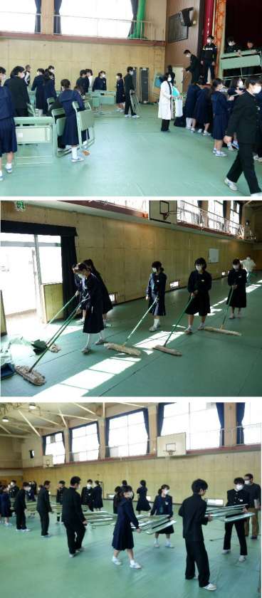 春休みの部活動のため、体育館の片付けをしてもらい。各担任から通知表をお渡ししました。