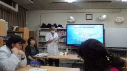 今日(3日)、午後2時より本校図書館で内科の学校医吉田先生に講師をお願いして、教職員研修を行いました。学校におけるアレルギー疾患対応の映像を活用し、講話をいただきました。また、エピペンの正しい使い方の実習も行いました。内科医先生からは新型コロナウイルス感染症に対するお考えもいただく機会となりました。ありがとうございました。