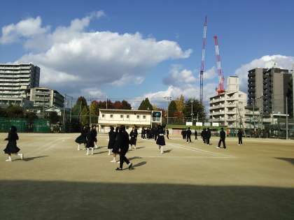 寒い中、昼休みには多くの生徒がグランドに出てボール遊びをし