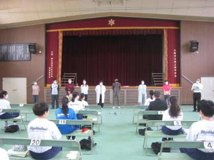 1年生に引き続き2年生が集まりました。クラス発表では担任の先生や教科の先生の紹介もあり、いつ平常授業が再開されてもいいように準備はできていますが、緊急事態宣言のもと、生徒の皆さんにはもうしばらく我慢してもらわなければなりません。はやく部活動もしたいと思いますが・・・