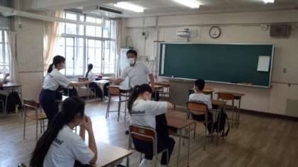 今、中学校の子どもたちはマスクを徹底するとともに手洗い、うがいをして感染予防に努め、教室内でもソーシャルディスタンスを意識した授業に取り組んでいます。 がんばれ、乗り切ろう、東三国中の生徒たち