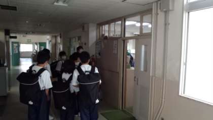 2時限目は校内見学をグループごとに行いました。校舎のどこにどんな特別教室があるかなど担当の先生と一緒に回っていました。