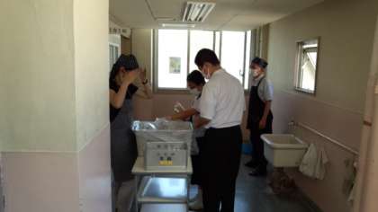 さて、陽射しが暑い中ですが、先週末からパンの持ち帰りが今週末までOKとなりました。今日の給食ではりんごジャムとアーモンドフィッシュもパン同様持ち帰りが認められると教育委員会から連絡指示がありました。持ち帰ったものは必ず当日中にお召しあがりください。お願いします。
