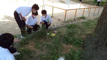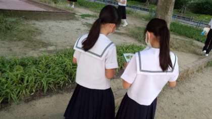 今日(9日)、1年生の理科の授業は学校の北側にある公園での植物観察に取り組みました。植物の世界では新型コロナウイルス感染症の影響はないのかな?