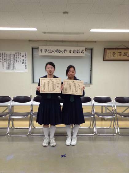 2人の生徒が「優秀賞」に選ばれ表彰を受けました。