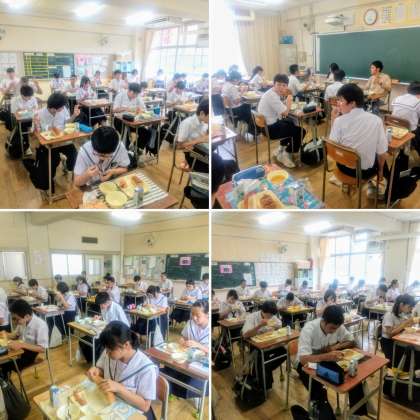 午前中の授業を終えて給食を食べています。午前中集中して授業を終えてホット一息!午後の授業も頑張ってください。