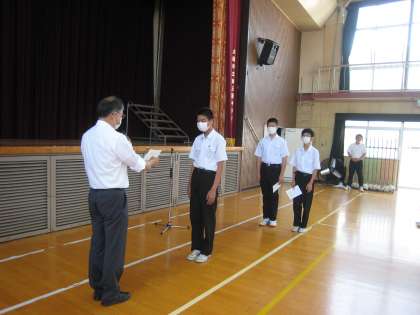 集会では、前期学級役員の認証式をはじめに行い、各学年の代表者に認証状を手渡しました。なお、本日放課後には各種委員会がそれぞれの会議場所で予定されていますのでよろしくお願いします。