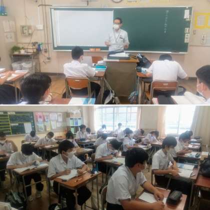 3年生は英語や国語について学習していました。国語は長谷川櫂さんの「間の分化」について学習していました。英語はアマゾンについての英文について学習していました。3年生にもなると英語では難しい単語がたくさん出てきますね。覚えるのは大変ですが頑張ってください。