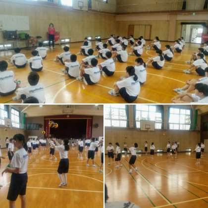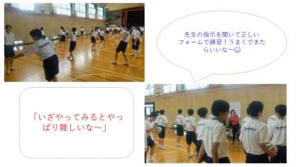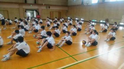 2年生は2クラス合同で体育の授業が行われていました。バレーボールについて学習していました。フォームややり方の説明が先生からアドバイスを受けていました。いざやってみると難しいですね。