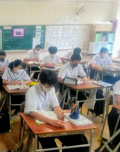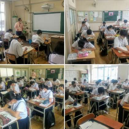 3年生では国語の授業が行われていました。生徒たちは「漢字を身に付けよう」を学習していました。小学校1年生から中学3年生までに学習する漢字はどの位あるのでしょうか。忘れないように日々家庭学習でもしっかり復習をしましょう。