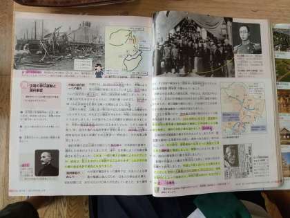 3年生社会の授業では歴史の分野で中国の排日運動と満州事変について学習していました。1911年の辛亥革命の後の歴史について学習しています。歴史上に出てくる人物について説明できるよう復習をしておきましょう。