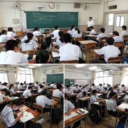 ラストスパート!今日は週末の金曜日。昨日とは違って天候に恵まれませんでしたが生徒たちは頑張って授業を受けています。1年生の理科の授業では無脊椎動物について学習していました。先生が話す内容や黒板に書かれた字を丁寧にノートにまとめている生徒が多かったです。
