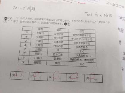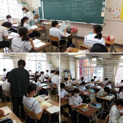 2年生も1年生同様に頑張って授業に臨んでいます。リスニングの練習問題ではある生徒のプリントでいっぱい〇をもらっている生徒がいました。慣れた日本語と違い英語の聞き取りは難しいですね。家庭でも学びポケットなどのディジタル教材を使ってリスニングに少しずつ慣れるようにしましょう。