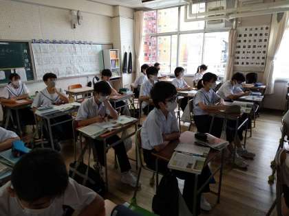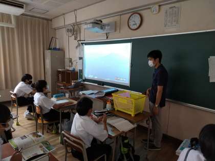 社会の授業が行われていました。地理について学習しています。九州地方について学習していますが日本のある山は2日に1回噴火している山もあるということも知ることができました。