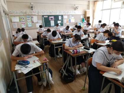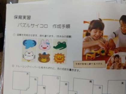 保育実習で使うパズルサイコロの作成を行っていました。おもちゃの完成が楽しみですね。