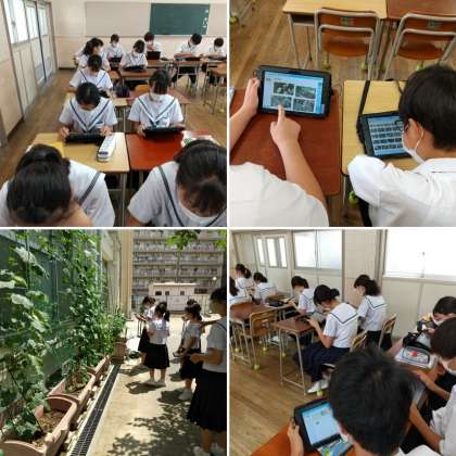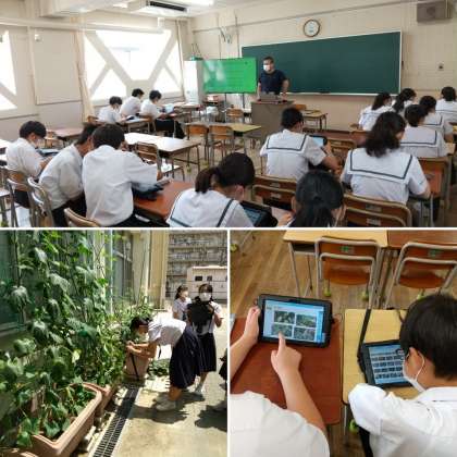 2年生の技術では新しい単元「生物育成に関する技術」を学習しています。今日は植物の育つ条件について学習しました。授業の後半は今まで観察した写真を発表ノートに張り付けてまとめました。