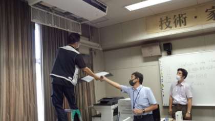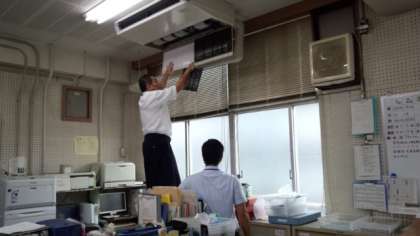 今日(29日)放課後にエアコンフィルターの設置を行いました。「ウイルス不活性化、雑菌除去効果」のあるエアコンフィルター「ネオゾーン」(ナックエアシステム)を購入し、設置いたしました。設置場所はエアコン(ガスヒーポン)のある使用頻度の高い学級、学習室、支援学級、パソコン室、音楽室、美術室、理科室、被服室、保健室、職員室など16室です。空気環流式のメタル系触媒加工フィルターで教室内の換気も従来通り並行しながら使用いたします。掃除機での埃吸引などで丁寧に使用すれば約2年間は効果が継続するとのことです。実際のところコロナウイルスに対しては解析中の部分が多いですが、インフルエンザウイルスなどに対する抑制や細菌・臭いなどの除去効果など安全性を証明するための様々な試験をクリアし、日本アトピー協会の推薦も受け、大阪府下私立高校や公立学校、公共交通機関、病院や社会福祉施設などにも使用実績があるとのことです。未曾有の非常事態に際してより安全かつ快適な教育環境を早急に整える必要性を鑑み、この1年間が最も重要な時期であると判断をし、PTAにご理解ご協力をお願いしました。ありがとうございました。