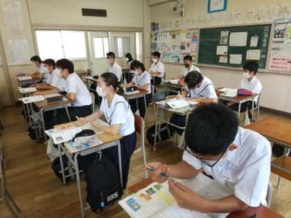 3年生の理科の授業は酸性やアルカリ性について学習してきました。今日は身近な液体の酸かアルカリを調べるpHについて先生から説明がありました。pHが7より小さかったら酸性で値が大きかったらアルカリ性なんですね。