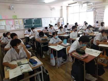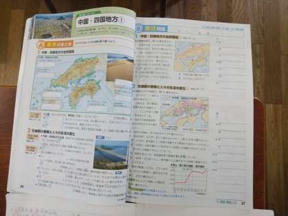 今日は朝から暑い!放課後はさらに暑くなります。生徒の皆さんだけではなく懇談にお越しの保護者の皆様も気を付けてお越しください。さて、今日の2年生は社会の授業が行われています。日本の地理について四国地方を学習しています。