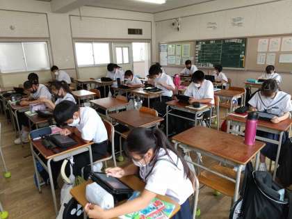 1年生の技術の授業では情報セキュリティ技術について学習しました。ただ先生の話を聞くだけではなく自分たちで「推測されにくいパスワード」を考えました。世の中でも生活で絶対に必要な6つの大切なセキュリティについて先生から説明がありましたので少しずつ覚えましょう。