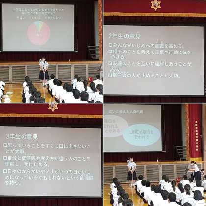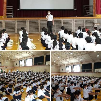 各先生や生徒会の生徒たちの話をしっかり聞けていました。今年度は例年とは違った1学期でしたが日々頑張りました。明日からはしっかり休みを取ると共に部活動、各教科の学習や生活リズムにも目を向けて17日間の夏休みを過ごしてください。