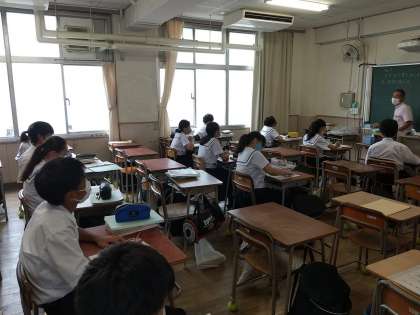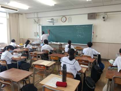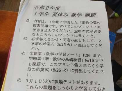 1年生の数学の授業では文字と式の単元について学習しています。少しずつ計算問題も複雑かつ難解になってきましたね。また、夏休みの宿題の返却も行われていました。毎日コツコツ頑張る事。好きなことだけじゃなく苦手なこともしっかり頑張る。少しずつ知らないうちに成果になりますよ。