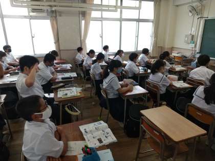 まだまだ暑い日が続きます。2学期が始まって4日目の登校日になりますが体調はどうですか。あまりの暑さで熱中症の心配もニュースの報道でもありますが水分補給もこまめに行いながら今日も一日学校生活頑張っていきましょう。1年生の授業の様子です。理科の授業ではガスバーナーの使い方について学習しています。どこを回すとどのように調節ができるのか。担当の先生からの細かい説明は理解でしましたか。
