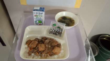 マーボーあつあげ丼 中華スープ ミニフィッシュ 牛乳
