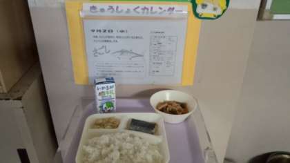 さごしの塩焼き 豚肉とじゃがいもの煮もの キャベツの梅風味 ごはん 牛乳