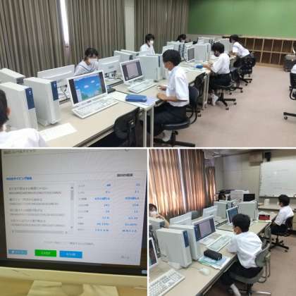 1年生の技術の授業では今日からパソコン教室で授業が行われています。初回はタイピング練習を行いました。ブラインドタッチでキーボードを打つことの難しさを学びました。2回目の練習で早くも1回目を上回って「やったー」といった声も聞こえました。来週はポスターを作りたいと思います。2学期初めての授業でしたが今学期も頑張っていきましょう!