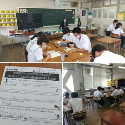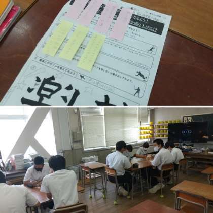 3年生美術の授業では「野球部のTシャツのデザインを考えよう」をテーマにディベートが行われていました。班の意見を尊重しながらデザインを考えています。これから班同士の意見が交わされます。