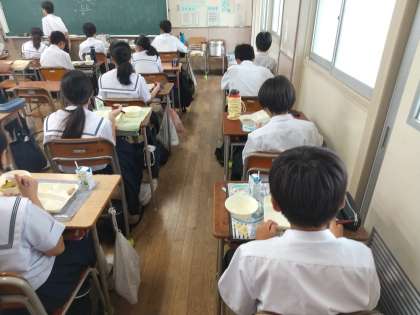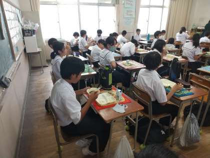 1年生の給食の様子です。今日は鶏肉がでました。好きな人が多かったみたいで1年生では食缶完食でした。今日もバランスの良い給食でした。調理員さんいつもありがとうございます。