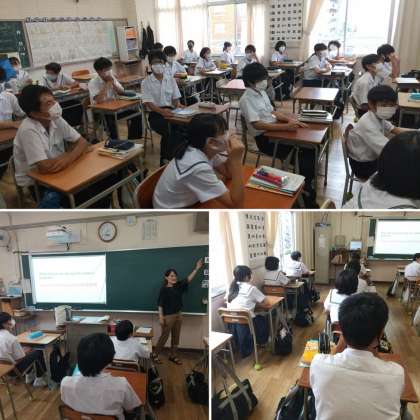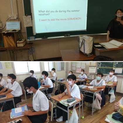 昼食休憩をはさみ午後からも各学年で生徒たちは授業を頑張って受けています。2年生の英語の授業では挨拶や日常の質問について担当の先生が英語で尋ね、それに対して生徒たちが元気な声で答えていました。2年生になると英語でのコミュニケーションも少しずつ慣れてきましたね。大きな声で恥ずかしがらずに会話ができていてよかったです。発音もとても良かったです!
