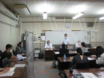 昨夜(3日)、午後7時30分から第1回PTA実行委員会を会議室で行いました。先延ばしになっていた理由は言うまでもなく、新型コロナウイルス感染症拡大防止、その予防対策を万全に行いながらの会議となりました。PTA会長からのあいさつに続き学校長のあいさつがありました。その後、各委員会からの活動報告、ほとんどの委員会は開店休業状態、広報委員会からは1学期末に配布したPTAだよりの編集発行についての発表がありました。その後の連絡では、今後の活動予定について体育大会などの話もありましたが、PTA社会見学については中止すると発表されました。中学校からは学校行事と学校の現状について、教務主任と生徒指導主事の先生からそれぞれお話しがありました。
