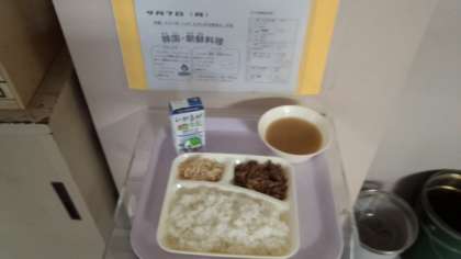 プルコギ トック もやしの甘酢あえ ごはん 牛乳