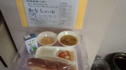 鶏肉とてぼ豆のスープ煮 じゃがいもとトマトのチーズ焼き 和なし(カット缶) 黒糖パン 牛乳
