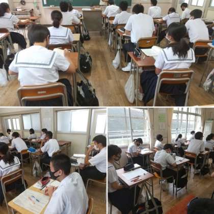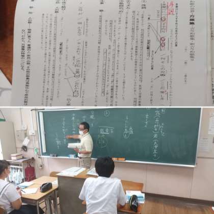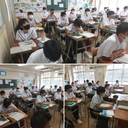 3年生の国語の授業です。今日は万葉集について学習しています。序詞、リズム、助詞の「の」、東歌について学習しています。古典で書かれた文章は中々なれることが難しいですが日々頑張って読むことや意味をつかむことをやっていきましょう。