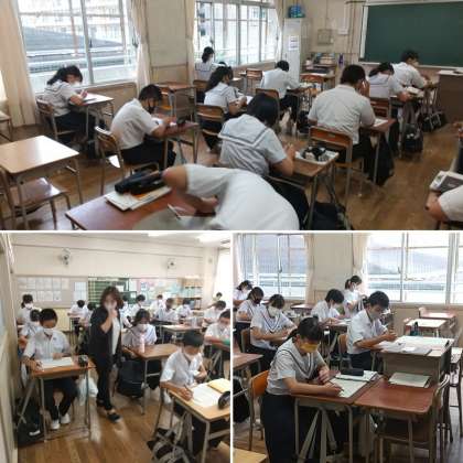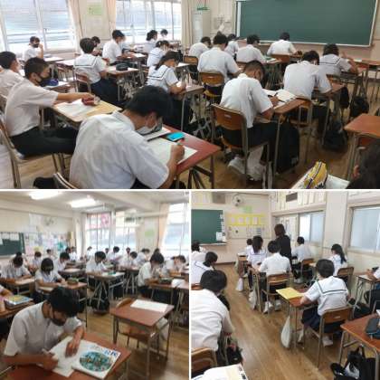 3年生は朝学習が行われています。週の2日は朝学習に取り組んでいますが生徒たちは朝から集中して取り組んでいます。たった約15分の取り組みですが少しずつ取り組んだことは必ず自分の力になってかえってきます。