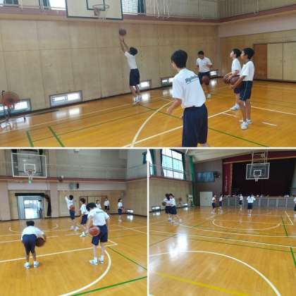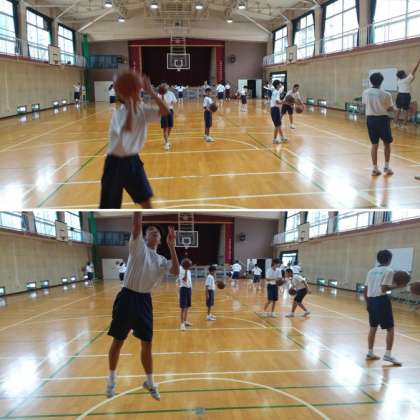 2年生の保健体育の授業では体育分野の学習でバスケットボールを行っています。先週はハンドリングについて学習していましたが今週はゴール下のシュートについて学習しています。「ボードのどこにボールを当てるとシュートが完璧に入る」バスケットボールの基本を習得しよう!