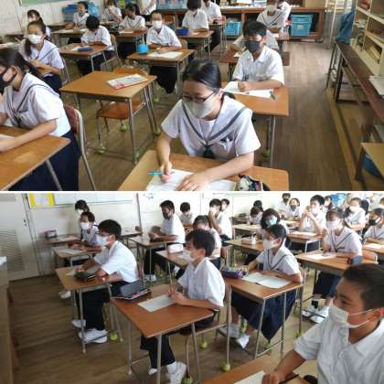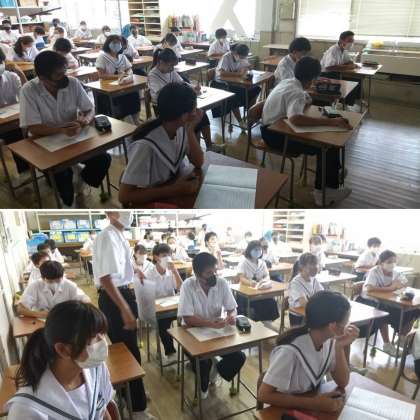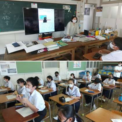 1年生の美術の授業ではクラスの仲間が作った作品に対しての感想を発表していました。一連の作品作りで頑張っていたことをしっかり発表できていました。
